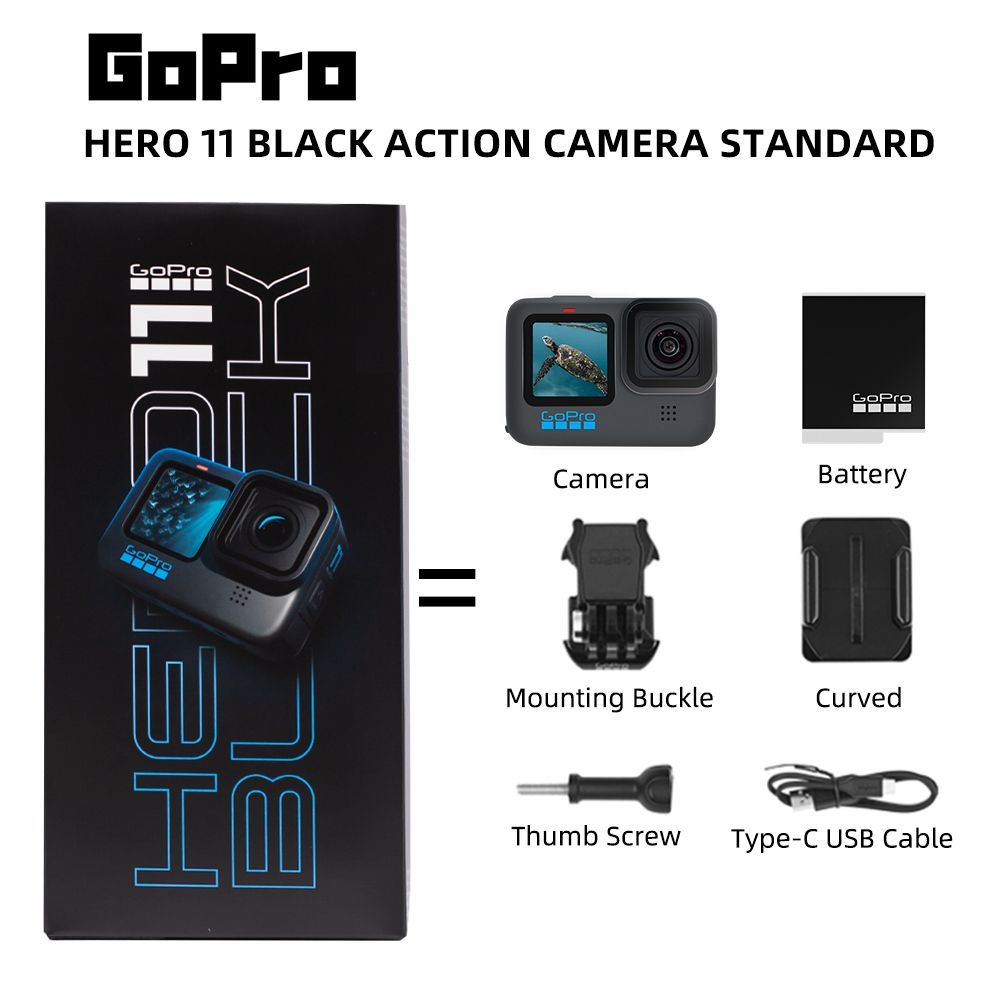 Камера HERO11 Black | Аккумулятор Enduro | Изогнутое клеящееся крепление | Крепежная пряжка | Кабель USB-C | Крепежный винт