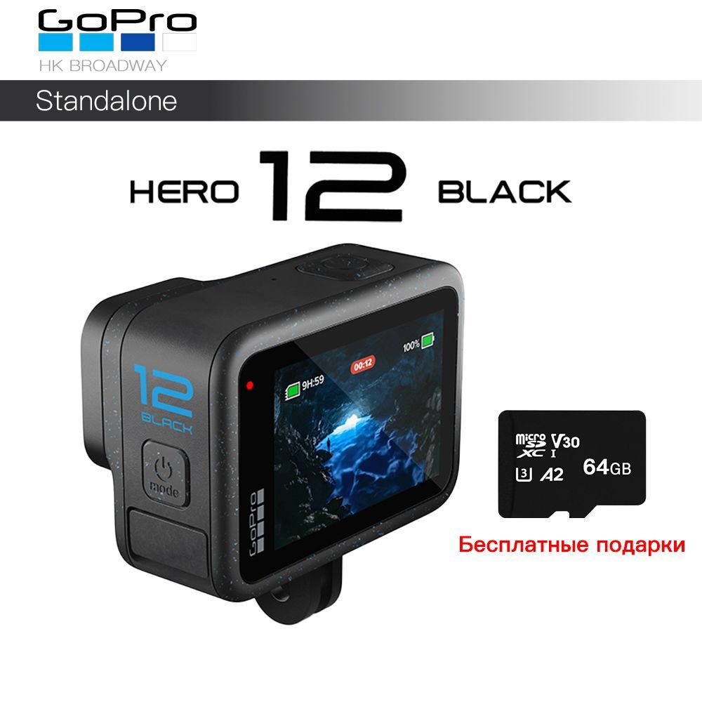 Экшн-камера GoPro Hero12 Black (Бесплатный подарок: карта памяти A2 64 ГБ), черный