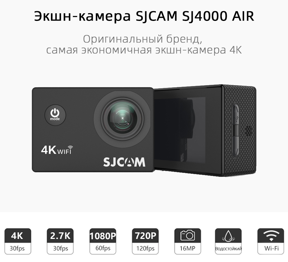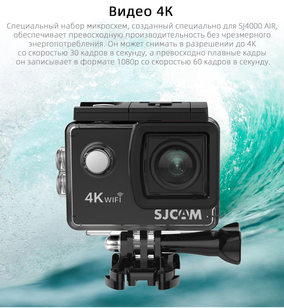 Экшн-камера SJCAM SJ4000 AIR, 4K 30FPS, WIFI, 16MP, HDMI-совместимый, 4-кратный цифровой зум, водонепроницаемая, Sports DV