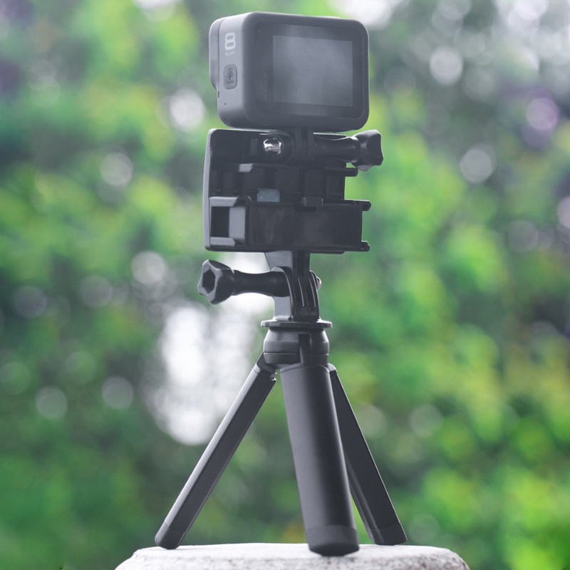 Большинство его универсальных аксессуаров совместимы с GOPRO. Например, повязки на голову, нагрудные ремни, палки для селфи, штативы и т. д.