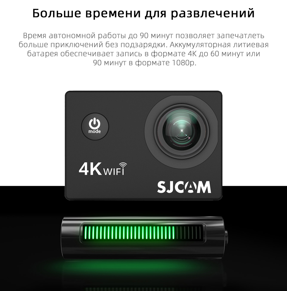когда он заряжен на 100%. Обычно он может записывать видео 4K @ 30FPS около 60 минут. Состояние 1080P может записывать видео в течение 90 минут.