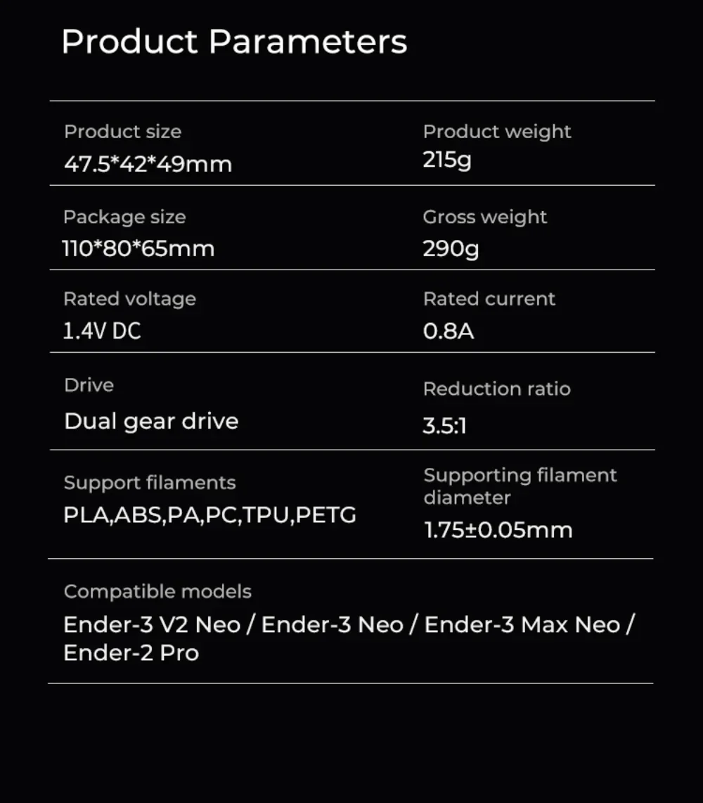 Экструдер Sprite SE-Neo: Версия Neo Совместимые модели:Ender-3 V2 Neo/Ender-3 Neo/Ender-3 Max Neo/Ender-2 Pro