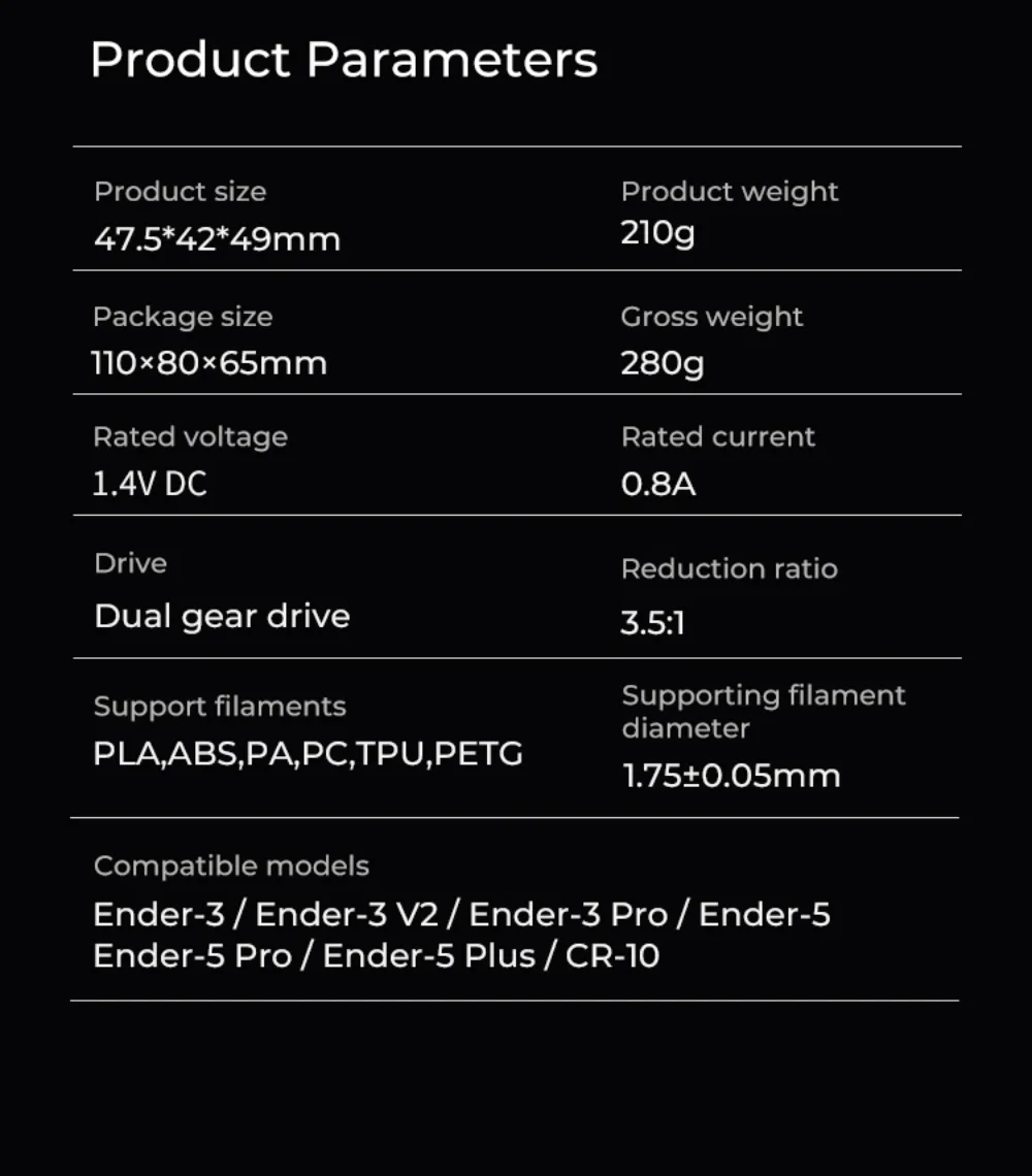 Sprite Extruder SE: версия Ender Совместимые модели:Ender-3/Ender-3 V2/ Ender-3 Pro/Ender-5Ender-5 Pro/Ender-5 Plus/CR-10
