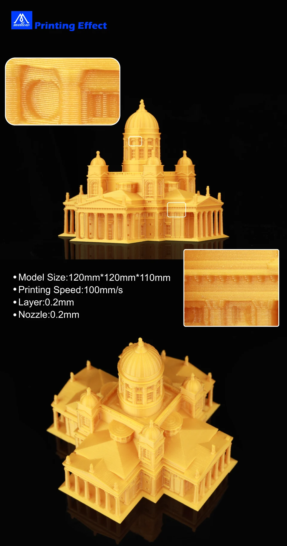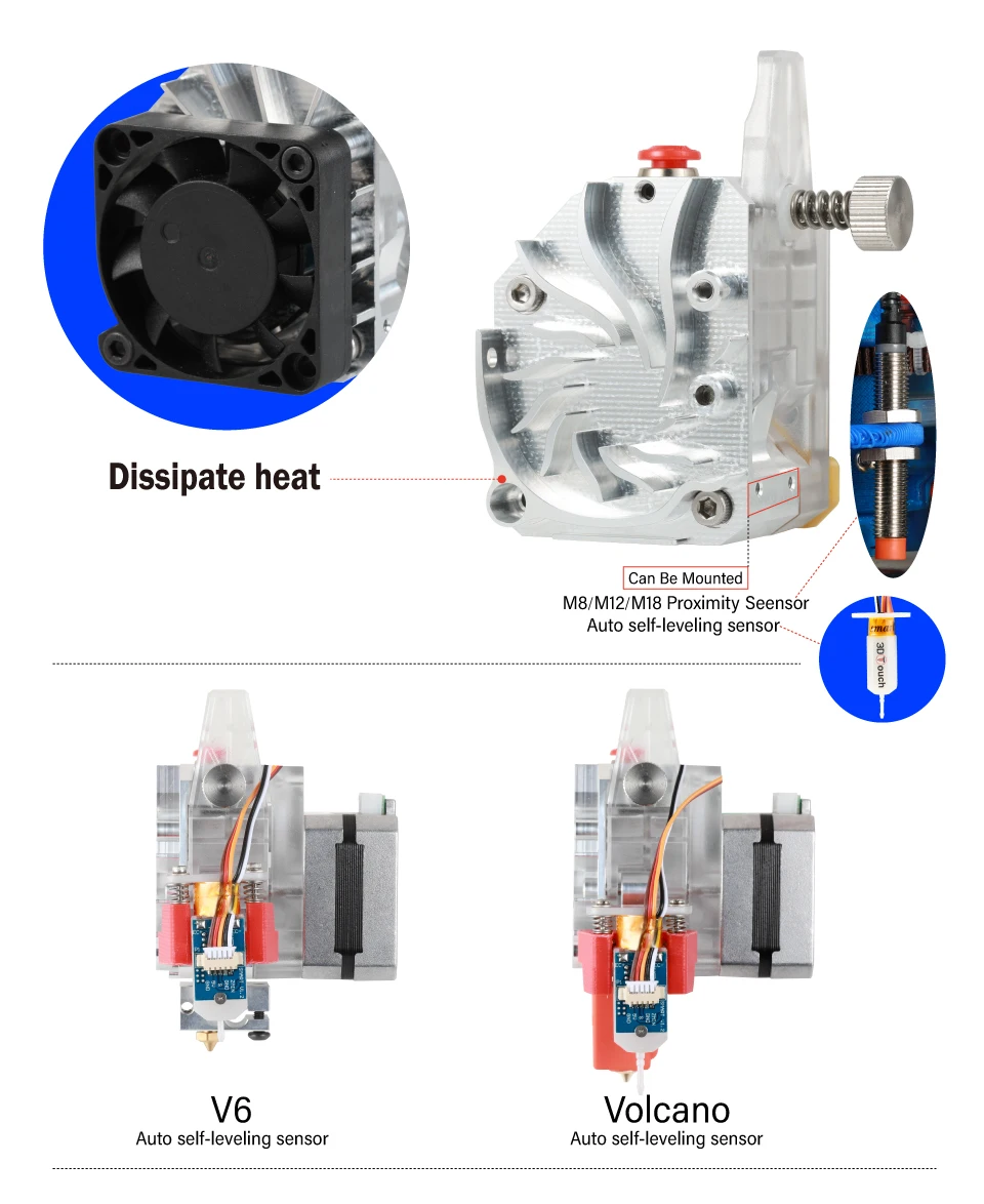 Поскольку он изготовлен из металла, ему не нужно использовать радиатор V6 во время печати на коротком расстоянии, что экономит место и повышает эффективность рассеивания тепла. Эффект печати лучше, чем у пластиковых материалов. Печать на материалах высокой твердости, таких как углеродное волокно, очень хороша.
