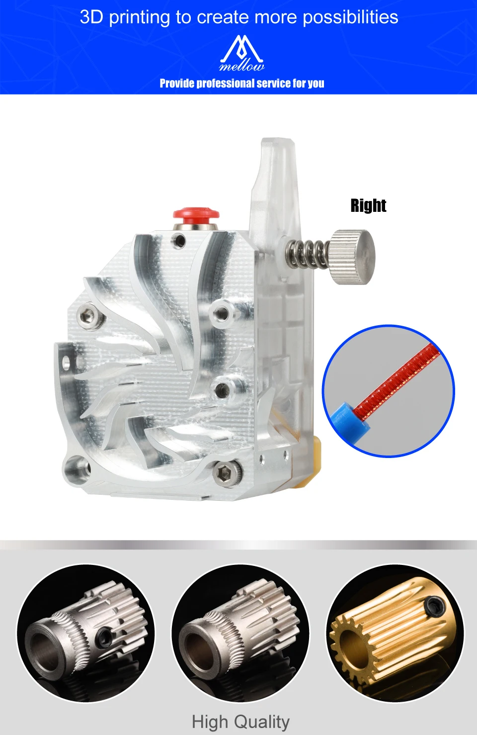 Передаточное число NF-DDG-WIND составляет 3: 1, Делая экструдер более мощным и облегчая сжатие нити, чтобы уменьшить засорение и вызвать сбой печати. Если вам потребуются отпечатки с высоким разрешением с маленькими соплами или отпечатки с высоким потоком с большими соплами, оптимизированное передаточное число в сочетании с нашими ведущими в отрасли приводными механизмами обеспечивает непревзойденную мощность нажатия и молниеносное втягивание в легком и компактная упаковка.