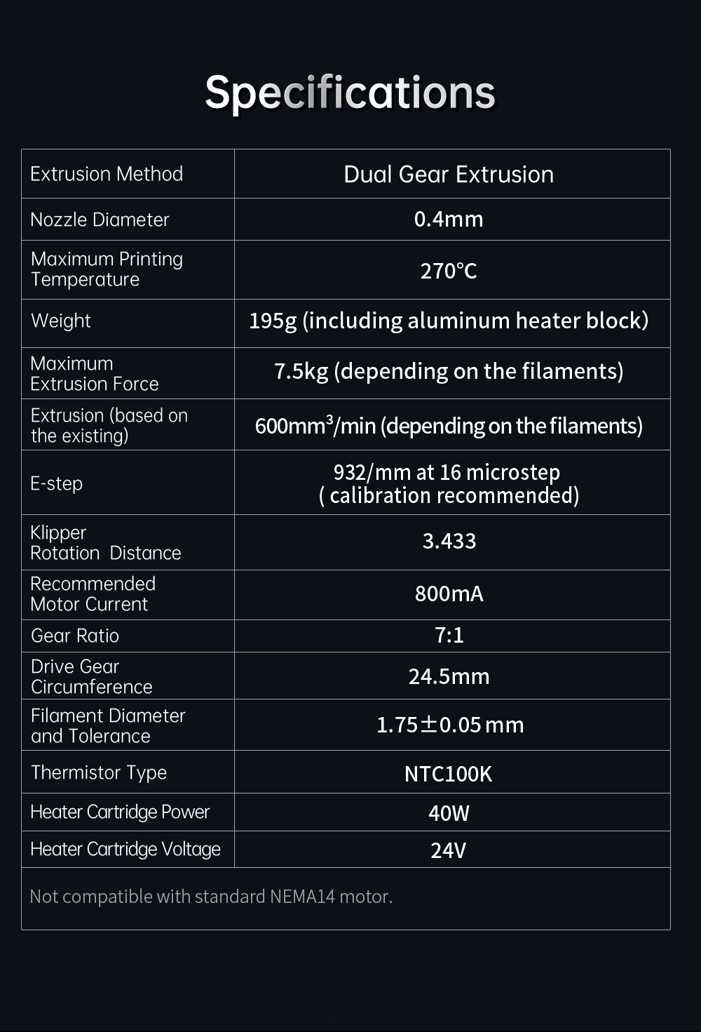 Maximum Extrusion Force 7.5kg (depending on filaments)