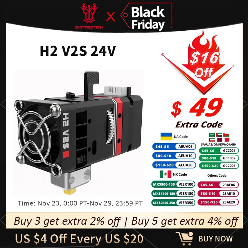 Экструдер с прямым двойным приводом BIQU H2 V2S 24 В
