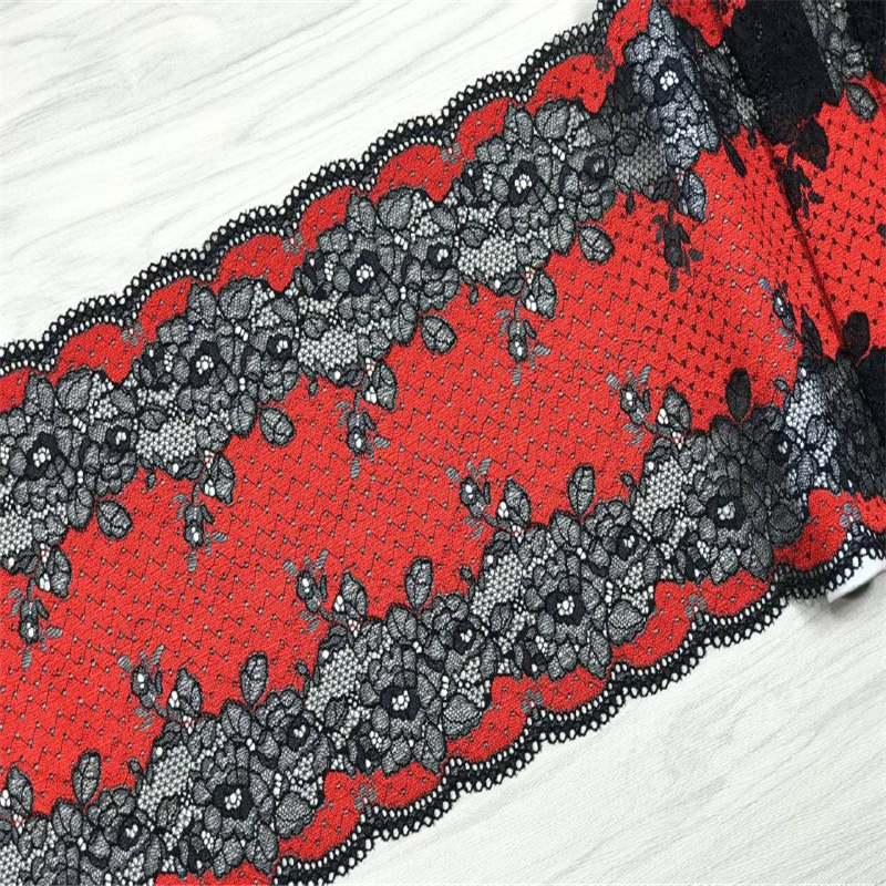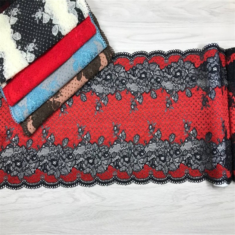 Color Black Cream White ,Black Red, Aqua Gray, Brown Coffee Stretch Lace