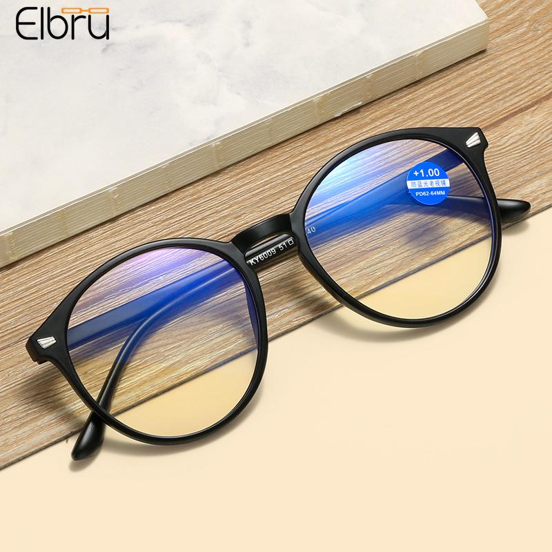Elbru диоптрии + 1 + 1,5 + 2 + 2,5 + 3 + 3,5 + 4 женские и мужские круглые очки для чтения модные ульсветильник очки для дальнозоркости с защитой от сисветильник