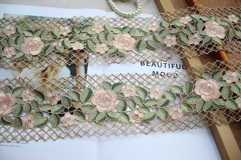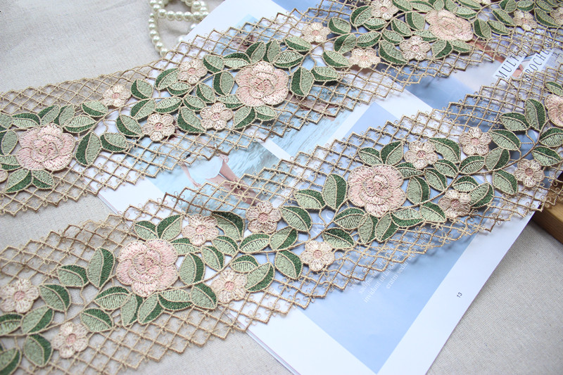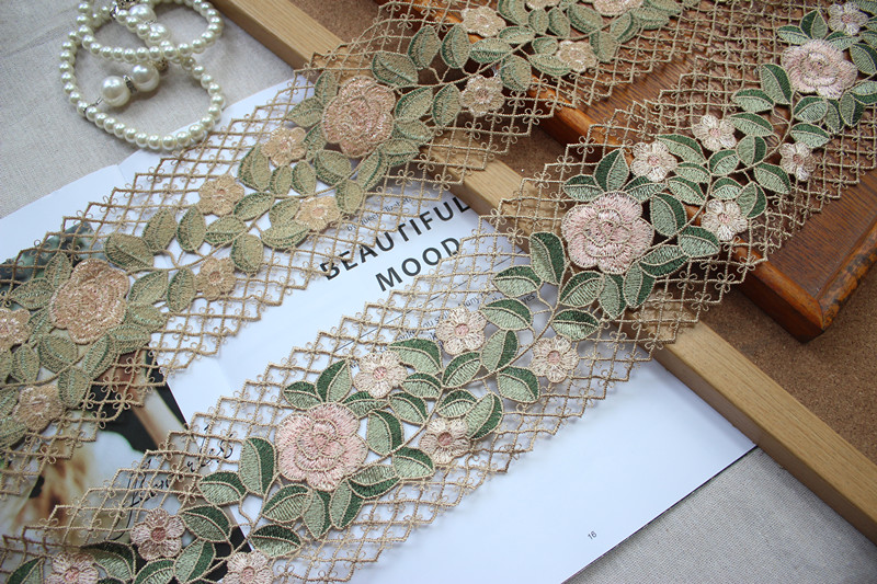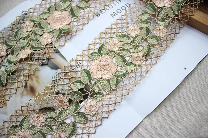 Элегантные зеленые хлопковые шторы из полиэстера и венецианского кружева, с 3d вышивкой роз, 10 см, лента для одежды, для дома, декор для шитья платья