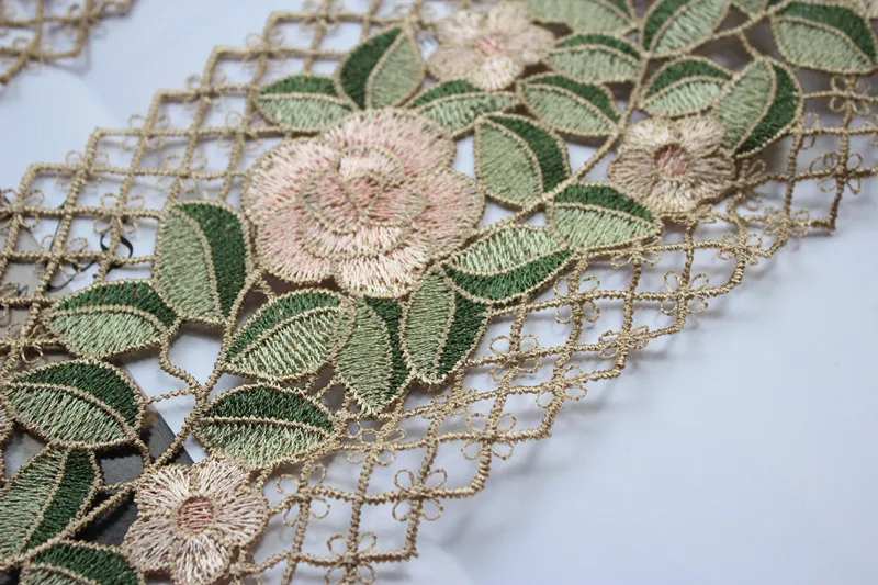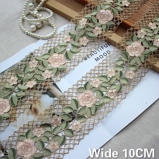 10 см Широкий элегантный зеленый хлопок полиэстер Венеция кружево 3d розы цветы вышивка лента для одежды домашние Шторы Декор для шитья платья