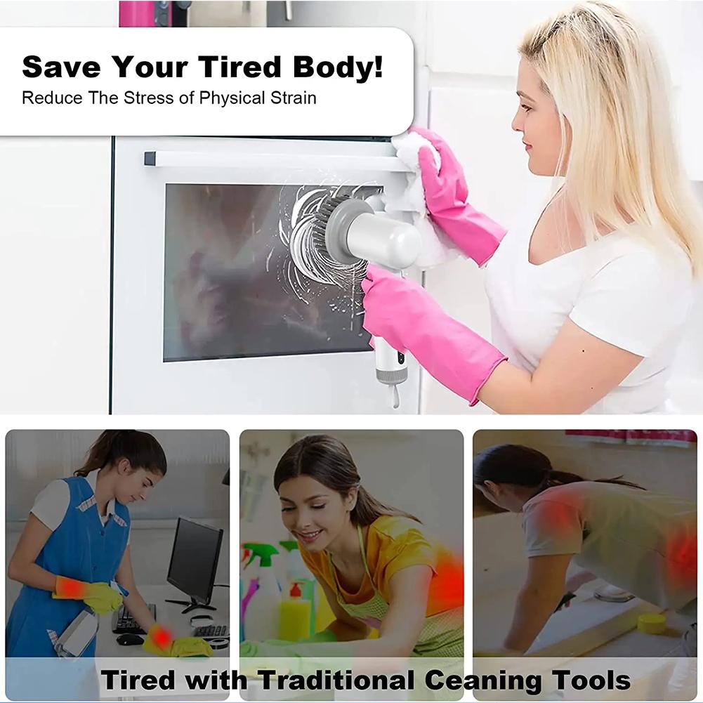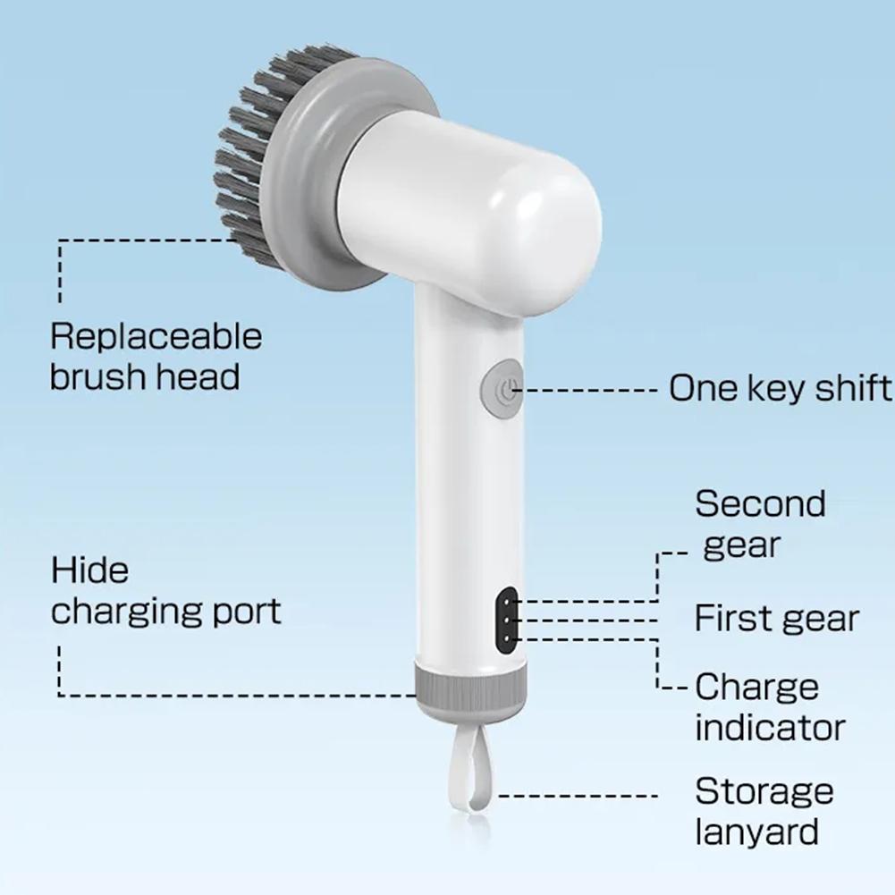 Эффективная очистка: электрическая щетка для очистки предлагает мощные и эффективные возможности очистки, что делает ваши задачи по очистке быстрее и проще. Он может эффективно удалять стойкую грязь, грязь и пятна с различных поверхностей, экономя ваше время и силы.