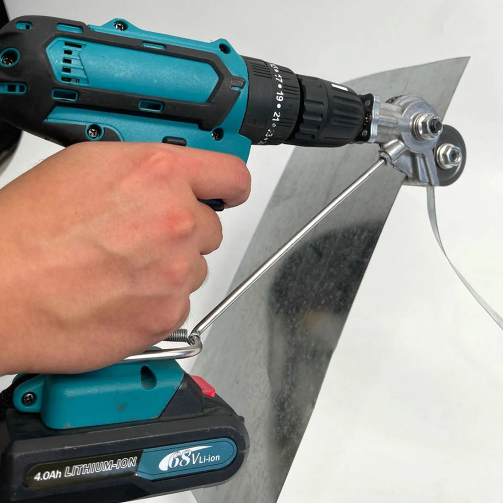 3. Переоборудование вырубных ножей для стальных плит:Эта инновационная Металлическая Насадка быстро превращает вашу дрель в электрические ножницы, идеально подходящие для сверлильного патрона. Аксессуары легко и надежно помещаются на место и готовы к немедленному использованию.