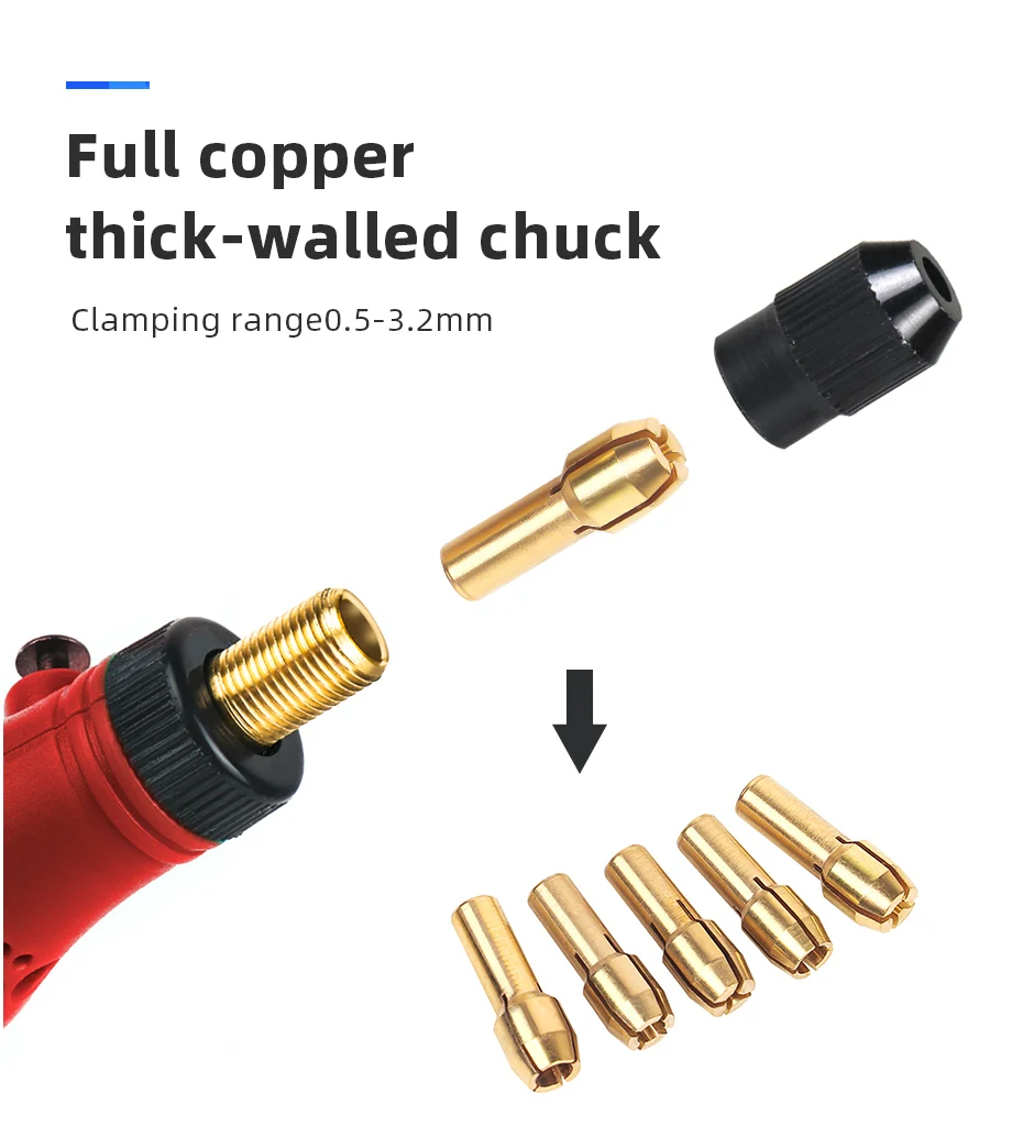 Зажим: 0,5-3,2 мм (необходимо изменить патрон)