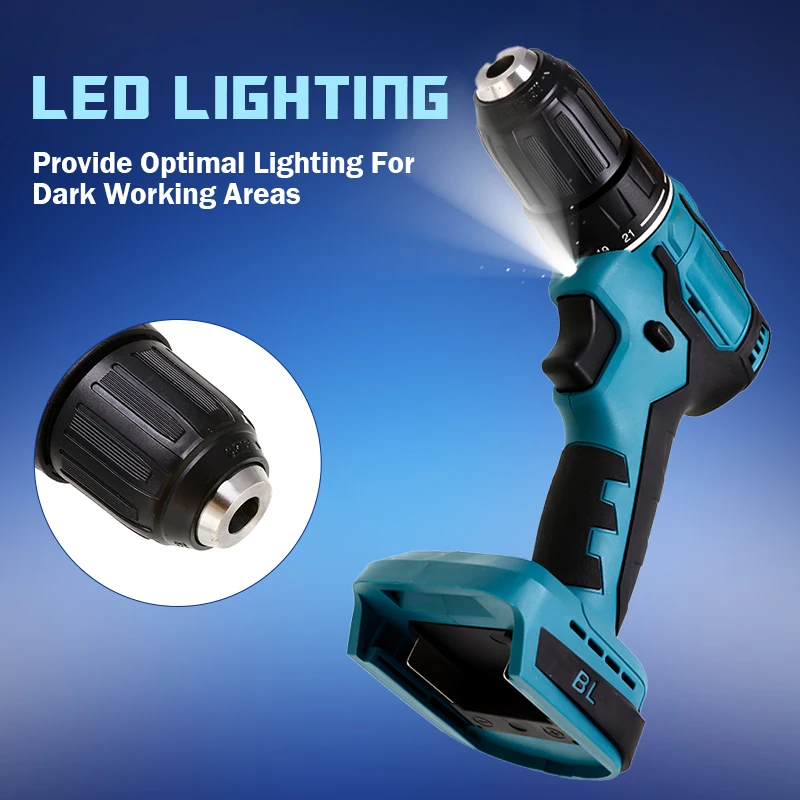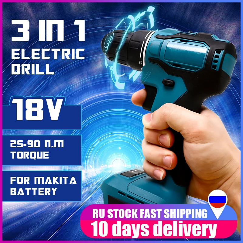 Электрическая дрель-шуруповерт бесщеточная Ударная дрель 18 в 90 нм DIY Электроинструмент Аккумуляторная батарея для батареи Makita