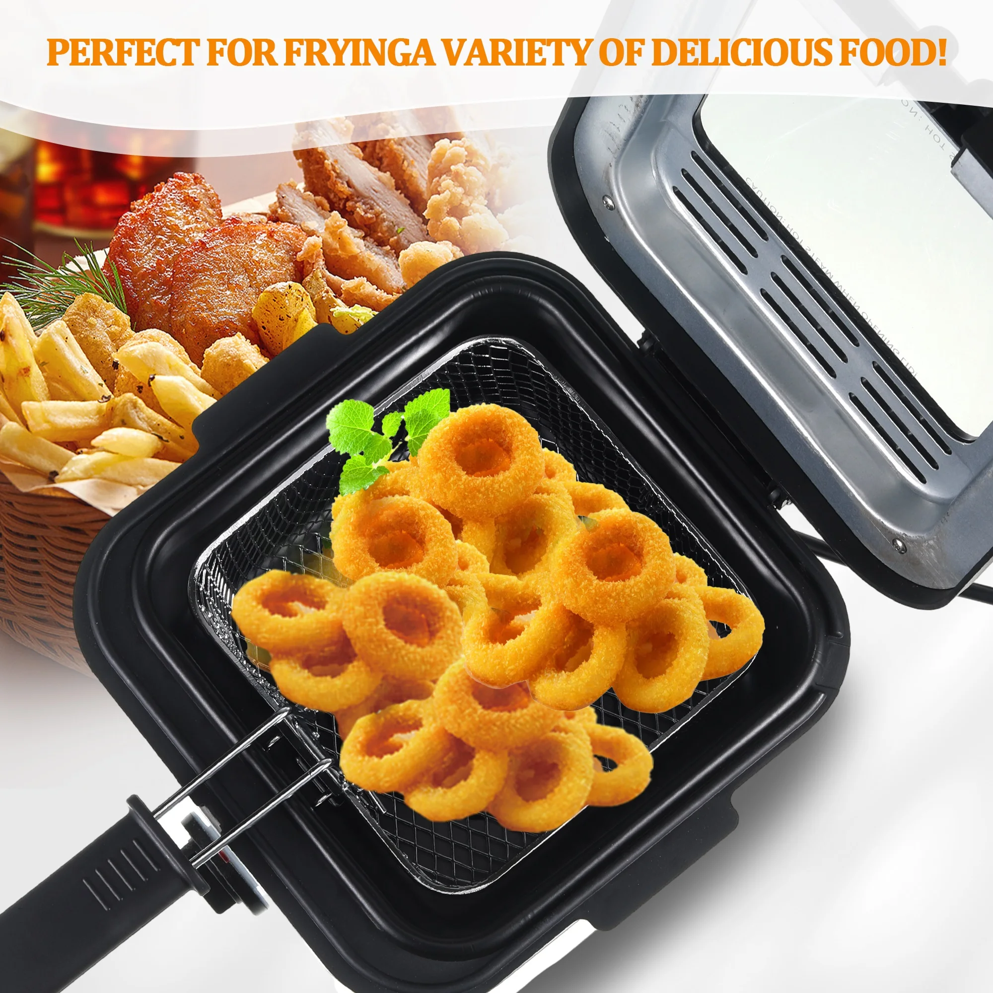 Легко чистить: Получите текстуру с помощью этой Бытовой электрической фритюрницы. Его компактный размер и исключительный размер позволяют легко чистить и подходят для широкого спектра вариантов приготовления пищи.