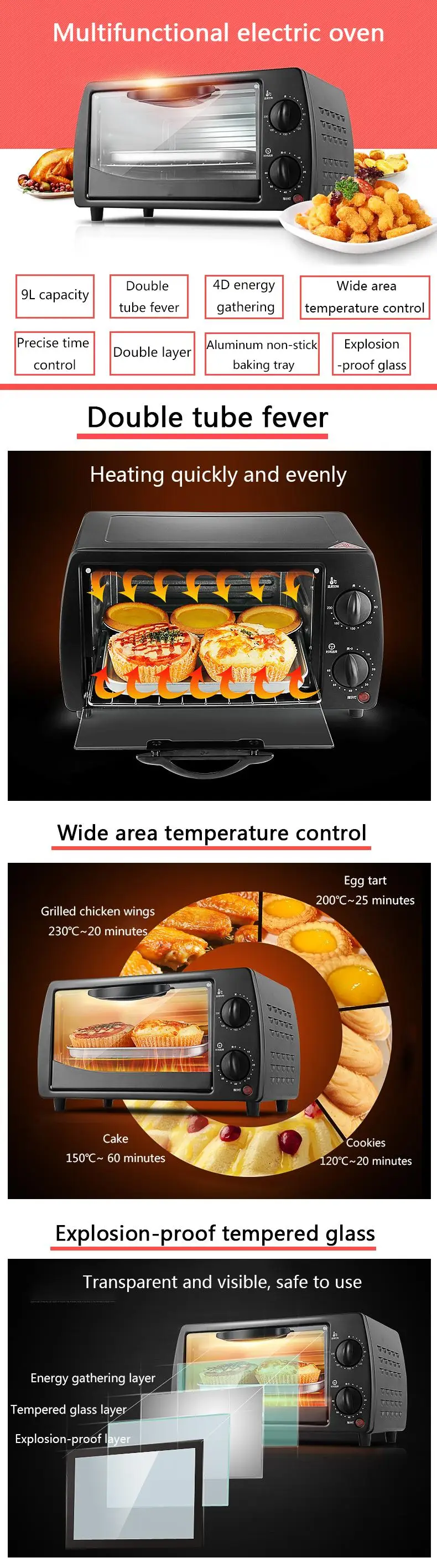 Электрическая мини-печь для выпечки DMWD, 2 слоя, 9 л, 220 В, духовка для домашней пиццы, инструменты для выпечки тортов, куриных крыльев, контроль температуры, таймер