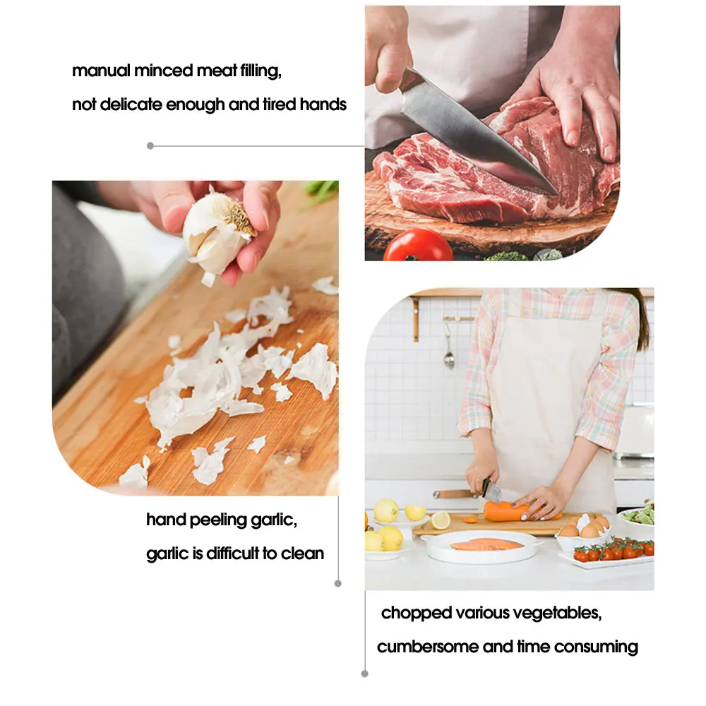 Двухслойный нож с четырьмя лезвиями: Попрощайтесь с ручной нарезкой и громоздкой нарезкой овощей. Двойной слой четыре лезвия ножа направленного перемешивания равномерно, более эффективным и экономия времени