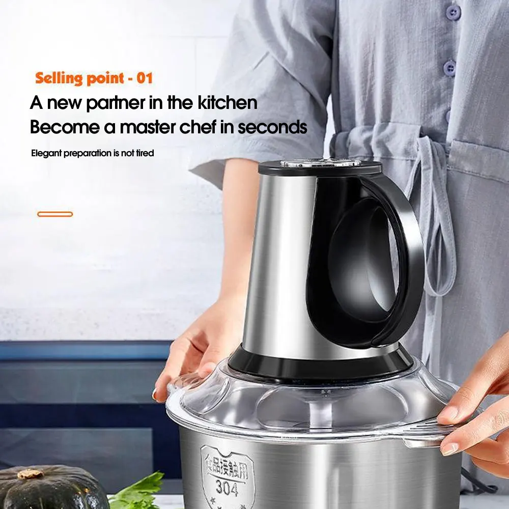 3 л большой емкости: Чаша из нержавеющей стали большой емкости может Измельчить 3 фунта чистой постной говядины без глютена одновременно, легко удовлетворяя потребности больших семей или семейных собраний.