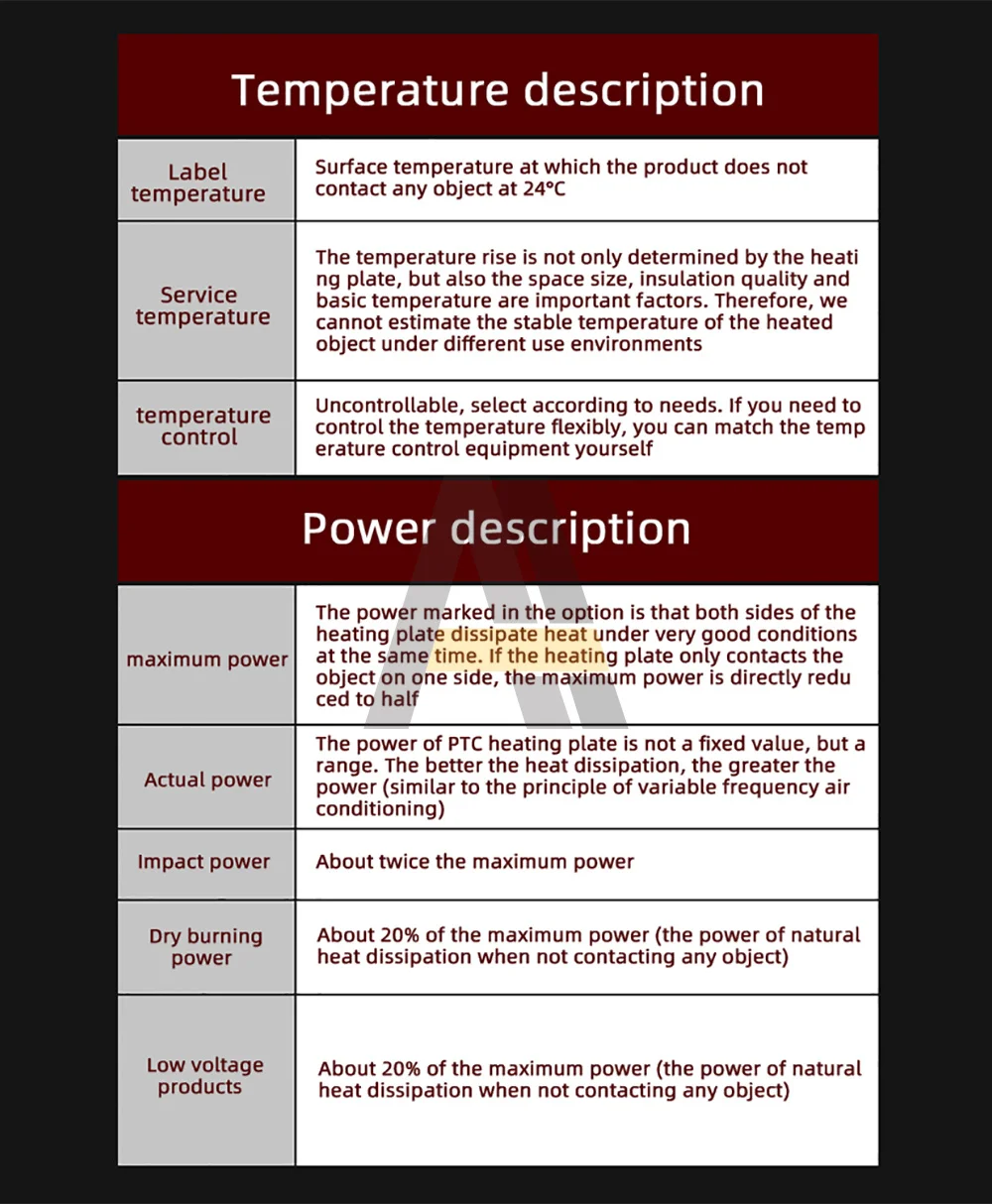 <span class="SnowProductCharacteristics_SnowProductCharacteristicsItem__titleContent__534v9">Мощность</span> Heating Element 12V 24V 36V 48V 110V Ceramic PTC electric Heating Plat
