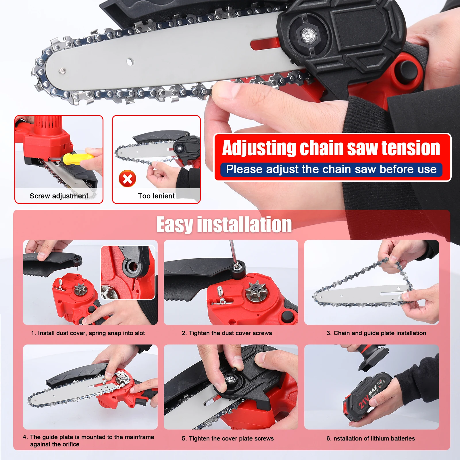 Это своего рода качественная бензопила для обрезки, изготовлена из высококачественного материала, практична, проста в эксплуатации и использовании, имеет широкий спектр применения, имеет длительный срок службы. Принимает щеточный двигатель, быстрый запуск, своевременное торможение, плавное регулирование скорости в широких диапазонах, относительно простое управление цепью и так далее. Пила была глубоко закалка при высокой температуре, с острыми зубьями пилы, более износостойкая, гладкая резка. Идеально подходит для обрезки, Колки дров, резки древесины и т. Д. Ты можешь попробовать.