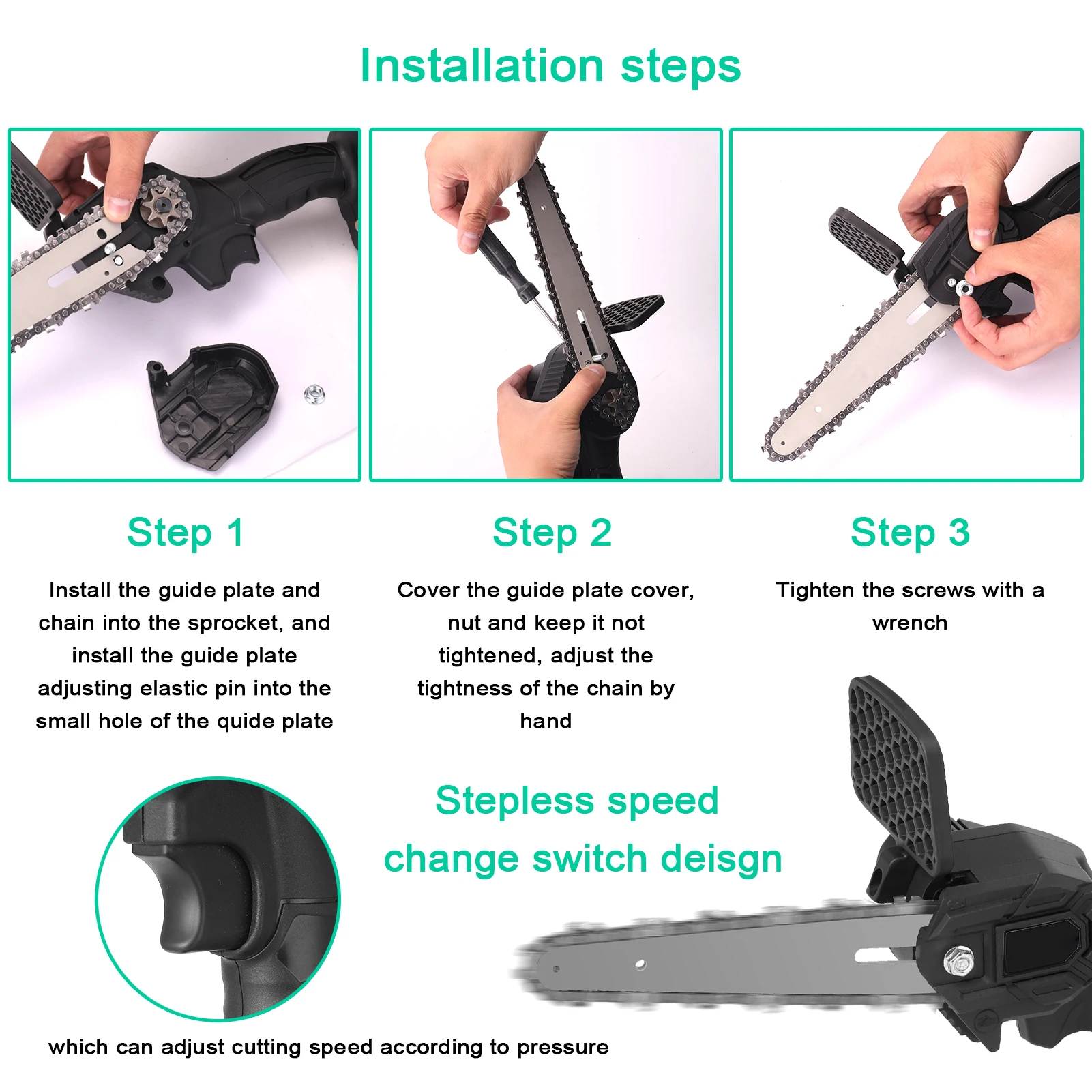 Беспроводной дизайн, легкий и портативный, легко носить с собой и пилить дерево.