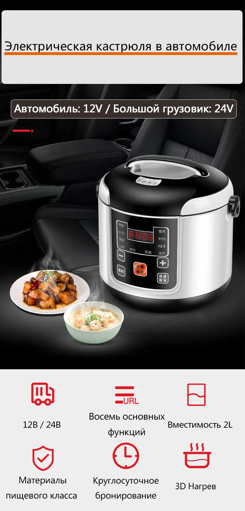 Электрическая рисоварка, 2 л, 12 В/24 В