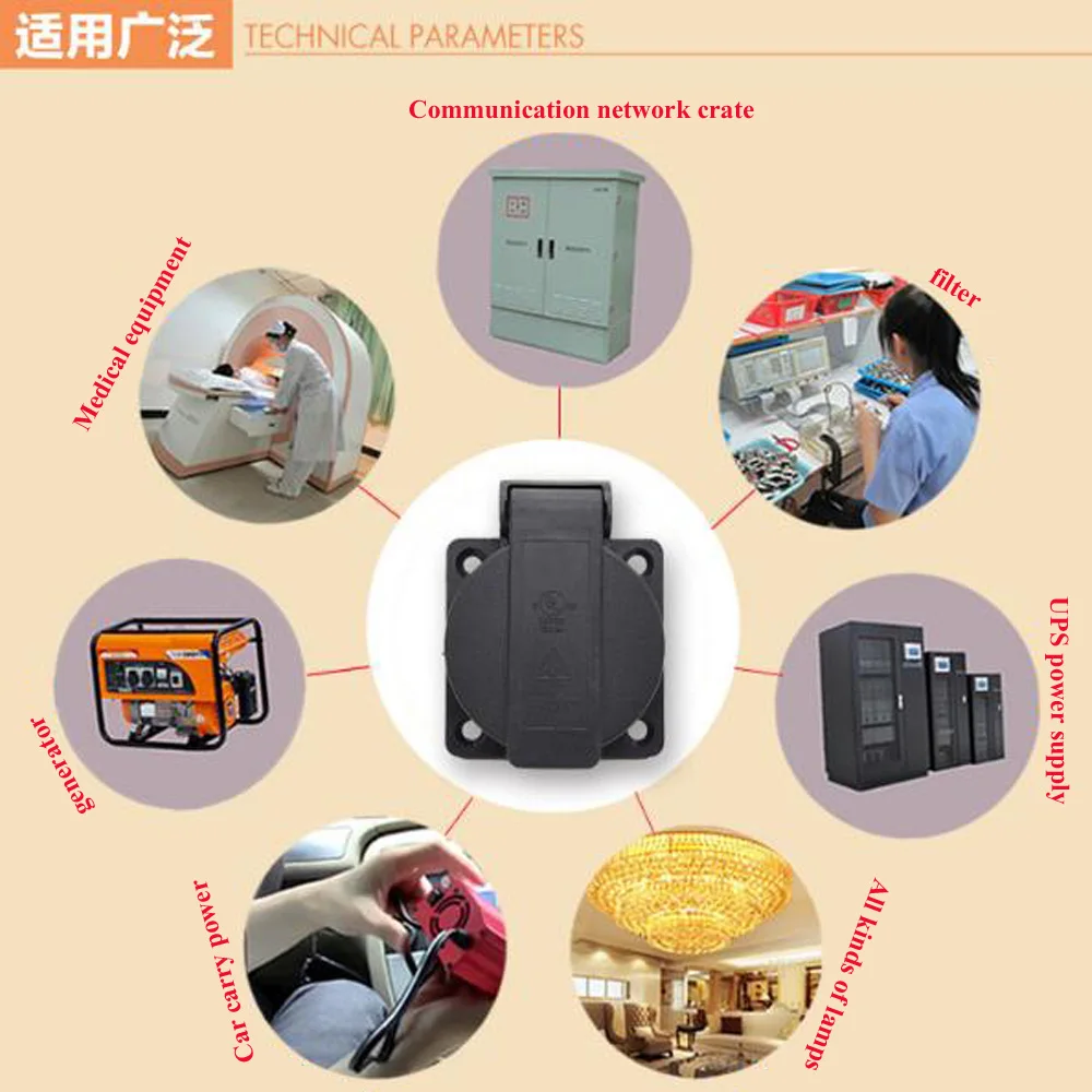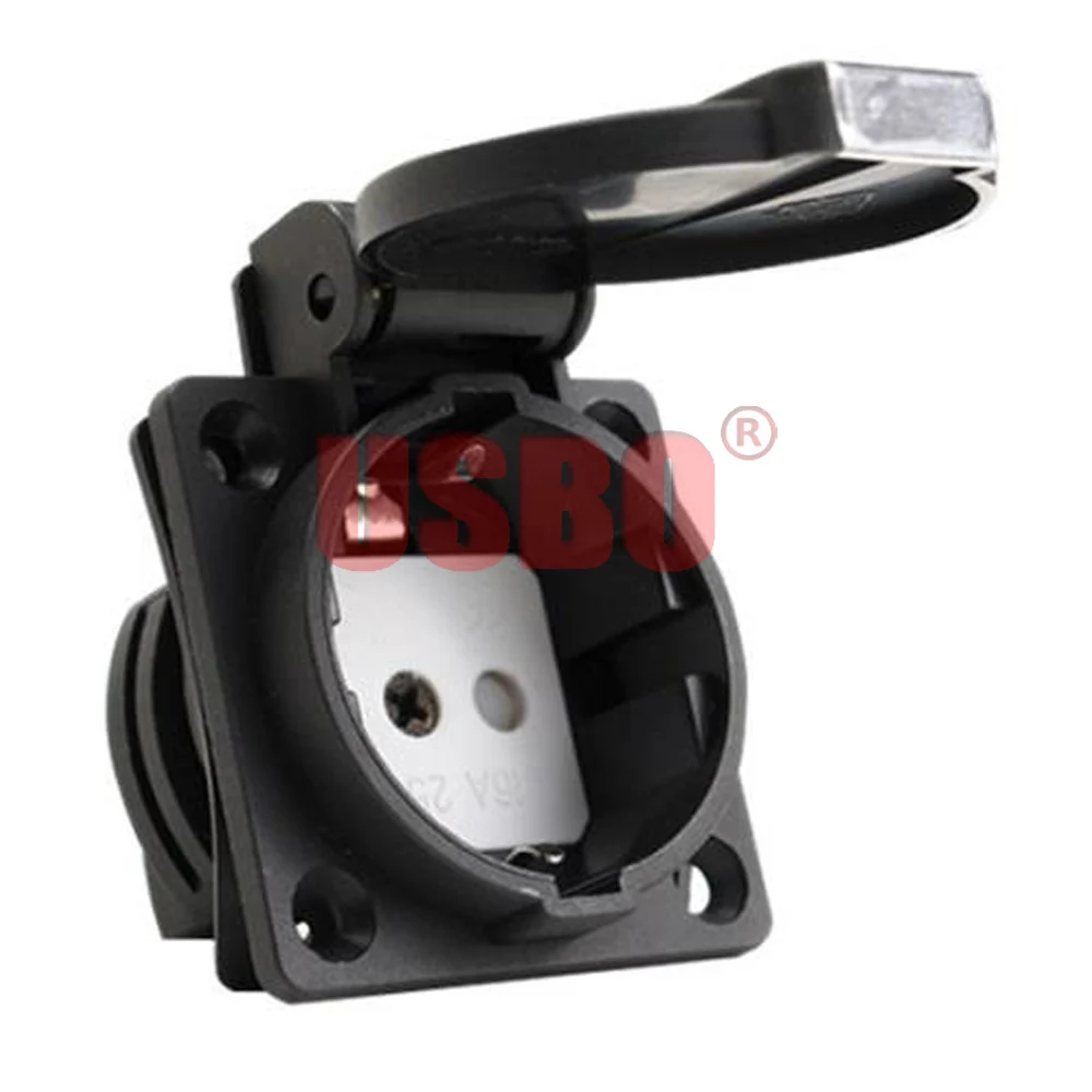 Электрическая розетка переменного тока, черная, IP54, 16 А, 250 В, европейская универсальная промышленная с водонепроницаемой крышкой, розетка европейского стандарта