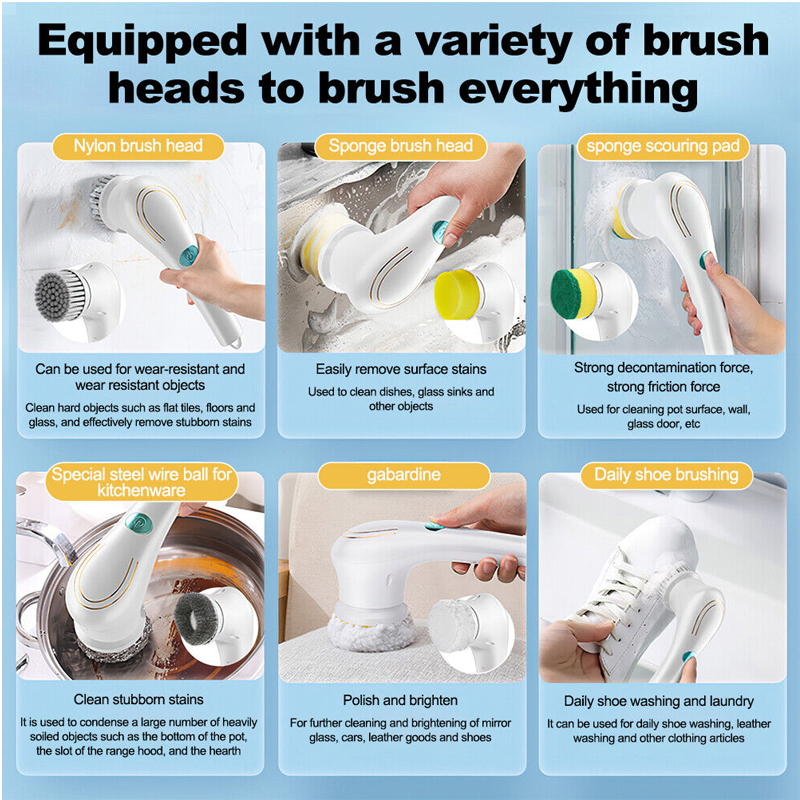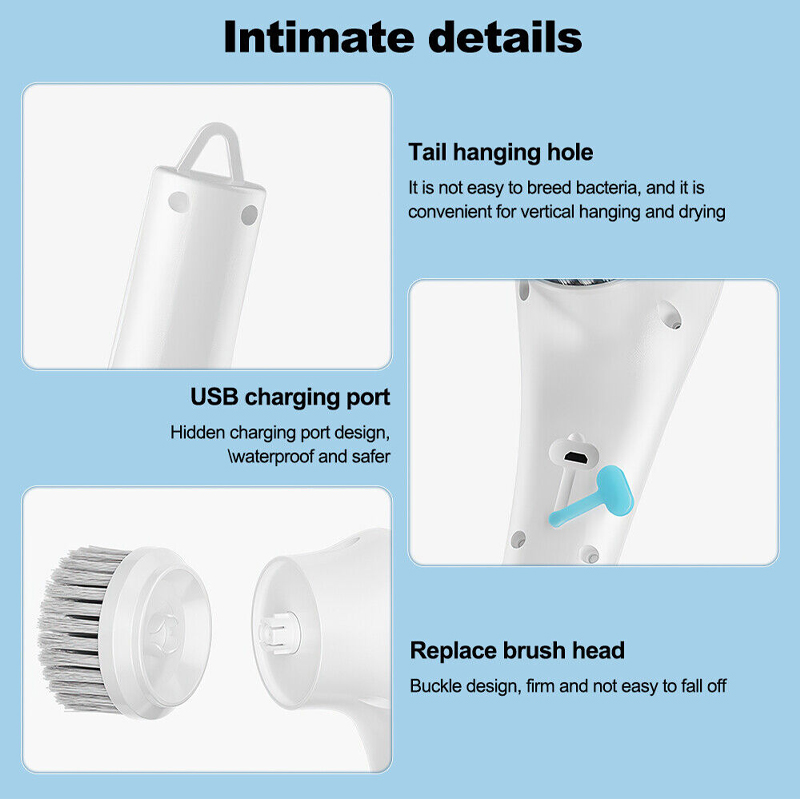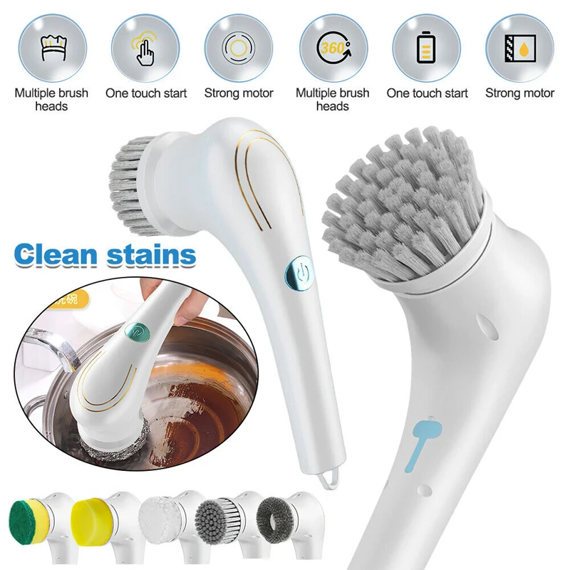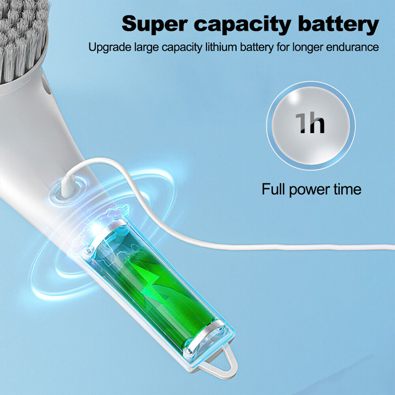 Мощный вращающийся скруббер: портативный вращающийся скруббер делает продукт прочным и мощным. Двигатель заставляет Электрический скруббер вращаться, который можно использовать с моющим средством для эффективной и быстрой очистки стойких пятен, экономии времени и усилий и придания вашему дому нового вида.