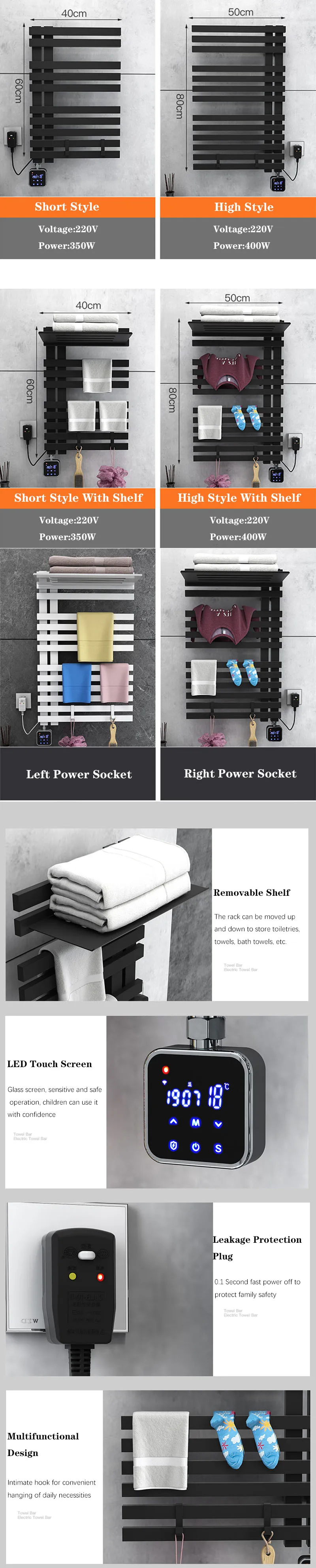 Подсказка:Использование электрических вешалок для полотенец, помимо того, что вы можете использовать сухие полотенца каждый день, также может эффективно снизить риск размножения бактерий во влажной среде ванной комнаты. Кроме того, вы также можете сушить детскую одежду, банные полотенца и т. Д.