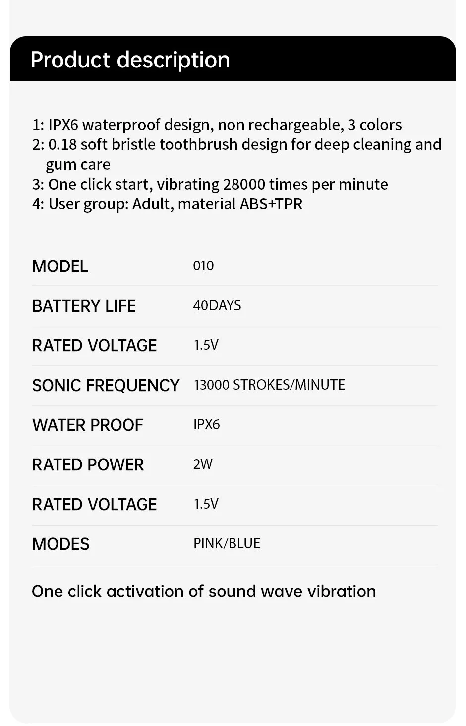 Электрическая зубная щетка Jianpai Sonic для мужчин и женщин взрослых, не перезаряжаемая, с мягким мехом, полностью автоматическая, водонепроницаемая, Coupl