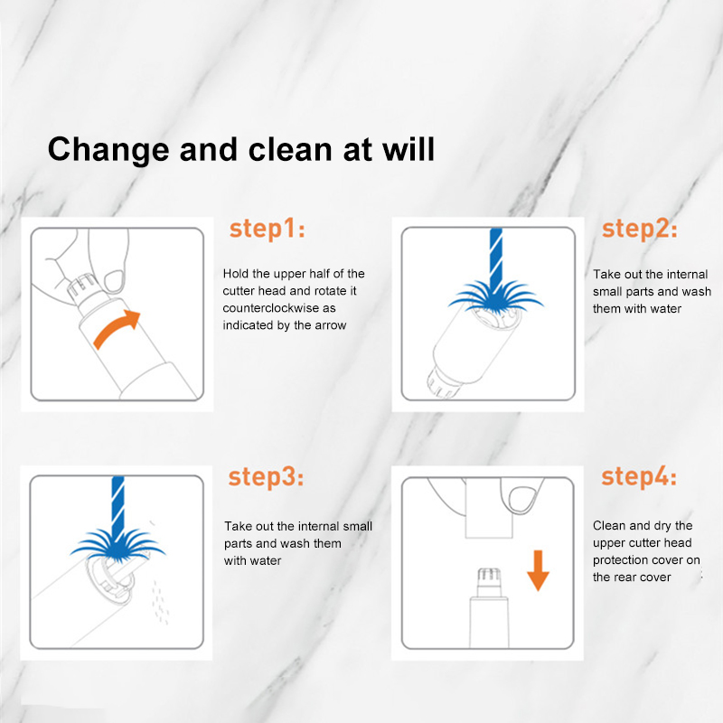 【Съемный корпус】 Независимую режущую головку можно разобрать и постирать отдельно, корпус водонепроницаем, а остаточные пятна масла для волос можно очистить и ополаскивать после использования, что может эффективно уменьшить рост бактерий.