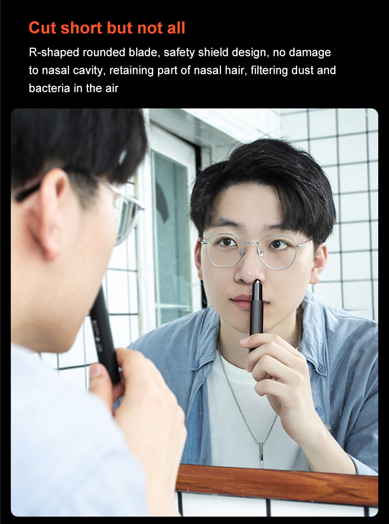 【Только короткая стрижка, а не свето】 R-образная закругленная режущая головка, конструкция защитного экрана, не повреждает носовую полость, сохраняет часть волос в носу, фильтрует пыль и бактерии в воздухе