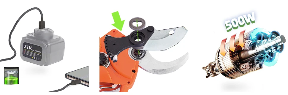 1. Откройте упаковку, установите аккумулятор в Аккумуляторный интерфейс ножницы.