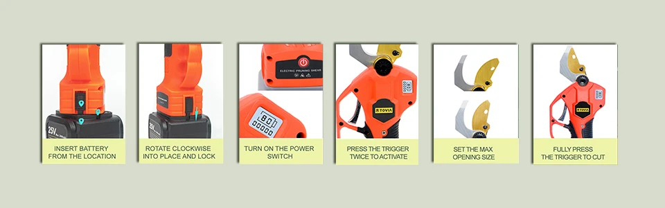 【ШИРОКИЕ ПРИМЕНЕНИЯ】Беспроводные ножницы T TOVIA предназначены для обрезки особенно толстых ветвей деревьев, фруктовых деревьев, декоративных деревьев, мертвых ветвей и древесных стеблей розовых кустов, винограда, крупных горшечных растений, и многие другие приложения. Он идеально подходит для использования в винограднике, фруктовом саду, деревяной ферме и на лесных участках. Это идеальный инструмент для тех тяжелых работ, где вам нужна большая мощность резания, чем могут обеспечить ножницы 16 В.