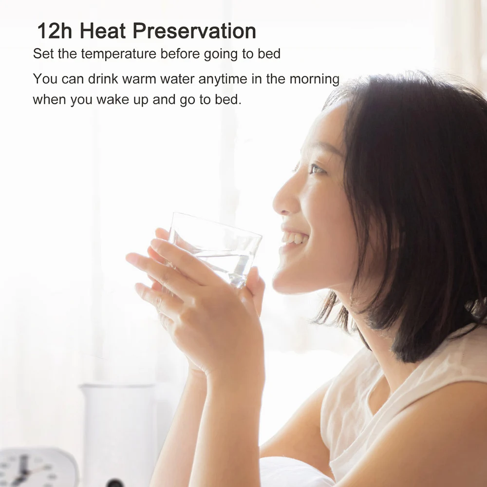 -12H Сохранение тепла. Установите температуру перед сном. Вы можете пить теплую воду в любое время утром, когда вы просыпаетесь и ложитесь спать.