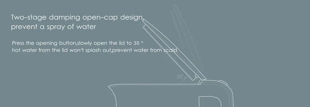 Нажмите на кнопку открытия крышки, крышка автоматически открывается под углом 30 градусов без брызг горячих капель, что останавливает брызги от обжигания