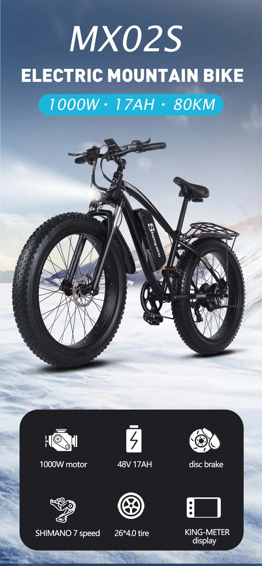 Электрический горный велосипед Shengmilo 26-дюймовый с толстыми шинами