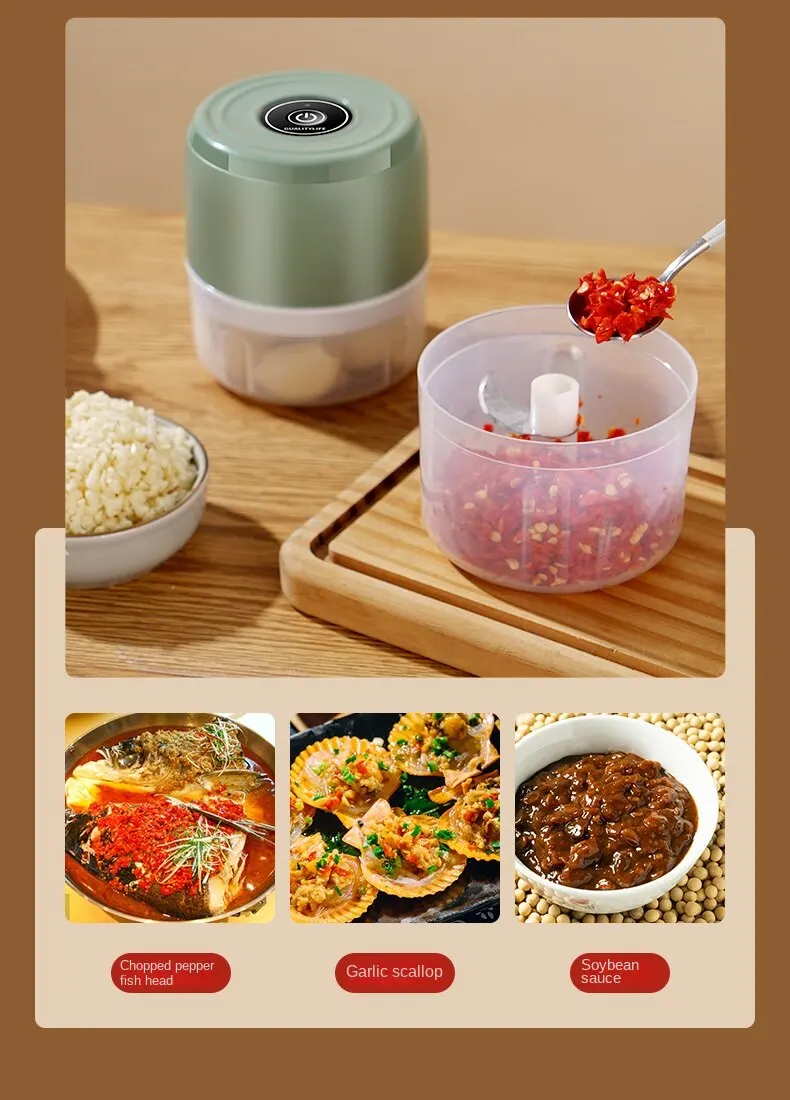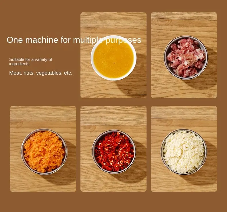 • Эффективный Измельчитель Еды :Этот Электрический измельчитель пищевых продуктов-универсальный кухонный инструмент, идеально подходящий для легкого измельчения чеснока, мяса и овощей. Его компактный дизайн делает его незаменимым гаджетом для любой кухни.