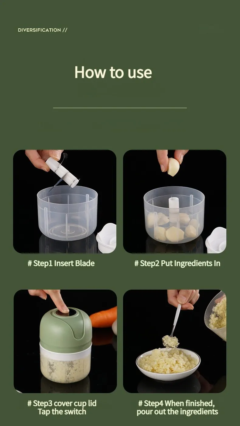 Электрический компактный измельчитель для чеснока емкостью 100 мл