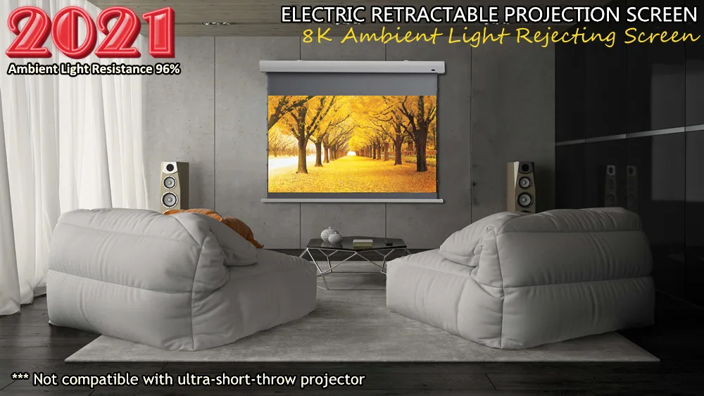 Это T2HALR ALR Электрический Настенный/потолочный экран с натянутым проектором с 8K внешней светильник, отвергающей поверхность для стандартного проектора, является лучшим выбором для длинных/Средних/коротких проекторов, которые имеют Натяжной истинный окружающий светильник материал-черный бриллиант. Черный бриллиант ALR с 1,3 усиления специально разработана для того, чтобы оптимизировать контрастность и соотношение цена/качество, даже в условиях низкой светильник условиях, и он успешно фильтрует тревожные рассеянный светильник и фокусируется на проекционный светильник на аудиторию без искажения цвета. Заметный контраст изображения увеличивается во много раз. Без края (= нет черной маскировки) дизайн позволяет гибкое применение различных форматов на одной ткани. Кроме того, спроектированное изображение может быть выровнено до края ткани, так что большое изображение, которое, кажется, почти свободно плавает в пространстве, находится в пределах досягаемости.