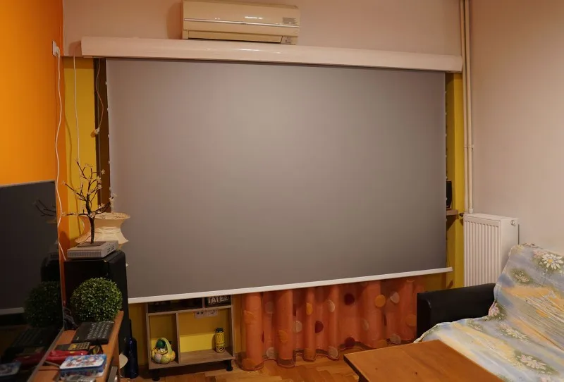 О: проектор в комплект не входит. Это отличный экран с питанием, если вам нужно что-то, что скрывается, когда вы его не используете, также это отлично позволяет просматривать проектор во время некоторых светильник окружающей среды.