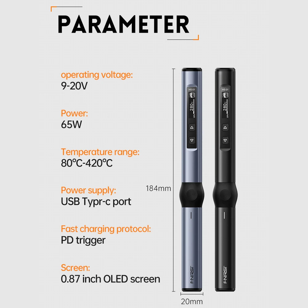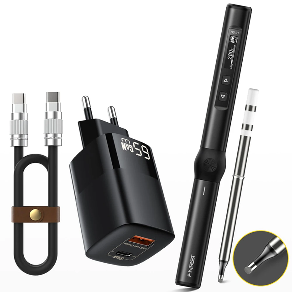 Электрический паяльник FNIRSI, портативный паяльник с OLED дисплеем 0,87 дюйма и регулировкой температуры, 65 Вт
