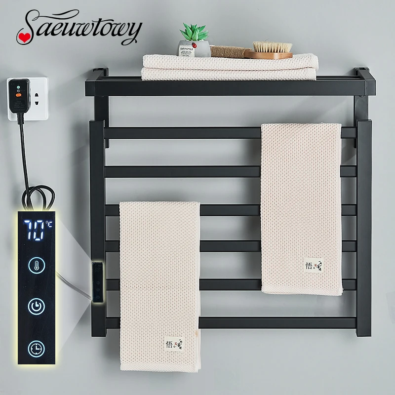 Электрический держатель для полотенец Сенсорный цифровой экран Нагреватель для ванной комнаты Вешалка для полотенец Электрическая сушилка для полотенец Водонепроницаемая