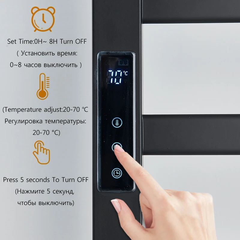 Электрический полотенцесушитель с сенсорным цифровым дисплеем и подогревом