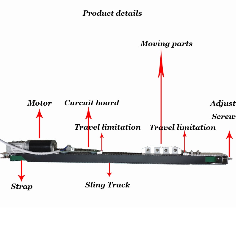По умолчанию длина этого двигателя составляет 1 м раздвижного окна. Свободные подвижные дистанции двигателя 1 м составляет около 45 см.