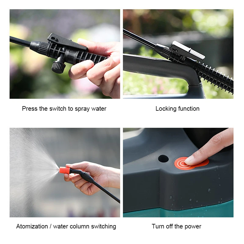 Повышение эффективности: Благодаря регулируемой тонкой конструкции распыления Электрический распылитель может позволить вам регулировать два типа потоков воды для повышения эффективности полива растений.