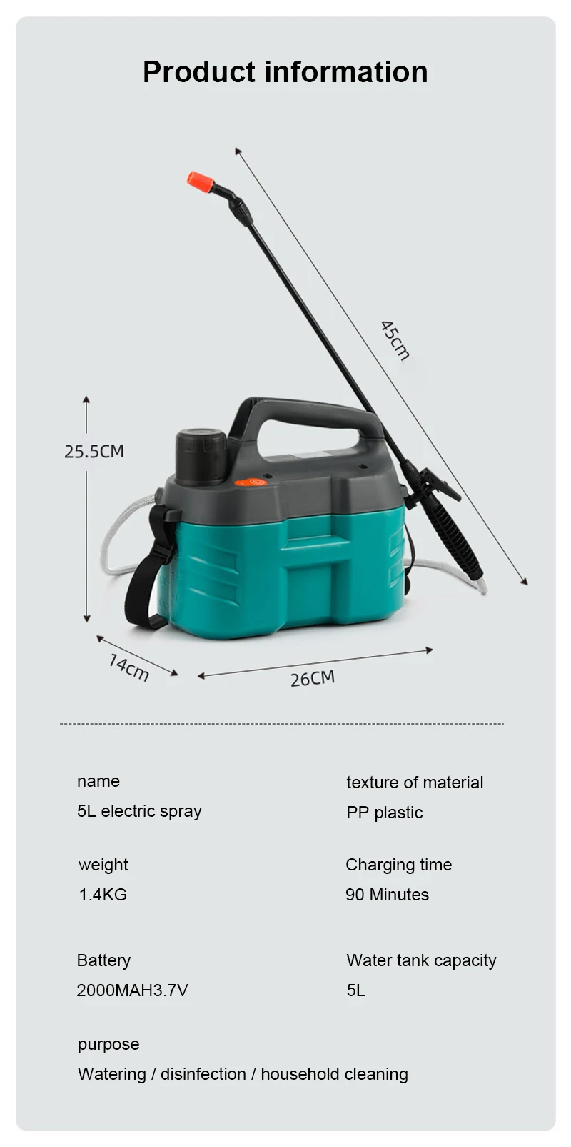 5L наплечный Электрический распылитель воды, регулируемый разбрызгиватель цветов, перезаряжаемый разбрызгиватель для полива растений, садовые орошения
