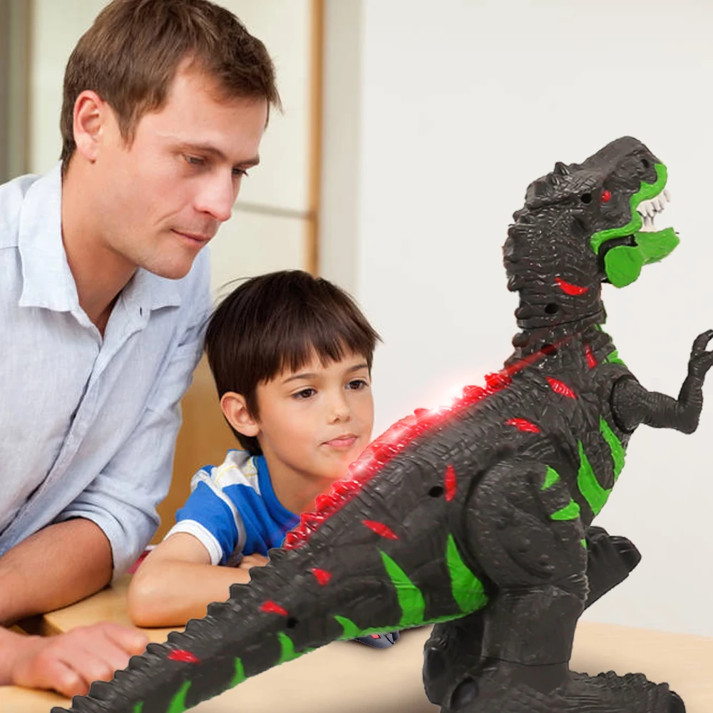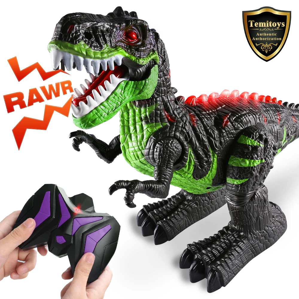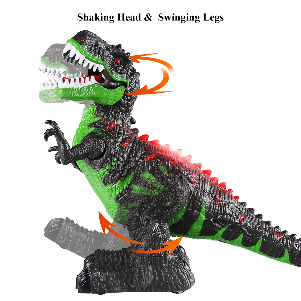 ►Высокопроизводительный опыт-эта игрушка динозавра может двигаться вперед/назад, поворачиваться вправо/влево, встряхивать головой, вращать на 360 градусов трюк со вспышкой светильник и звуками рева.