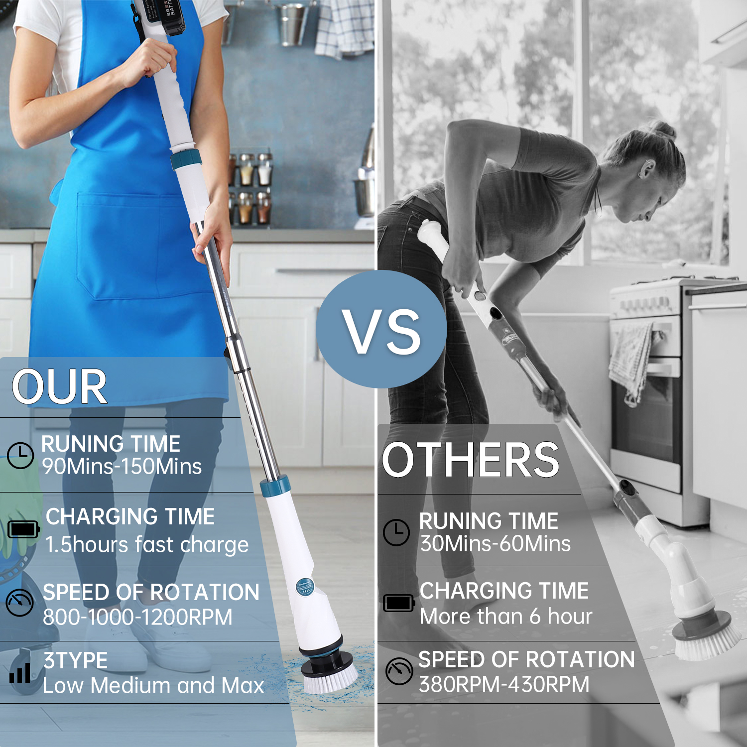 【Экономия времени и трудов】По сравнению с традиционными щетками электрические щетки обладают высокой способностью равномерно очищать, поэтому на обработку вещей обычно требуется 5 минут, по сравнению с ручными и внутренними щетками литиевые щетки чище;